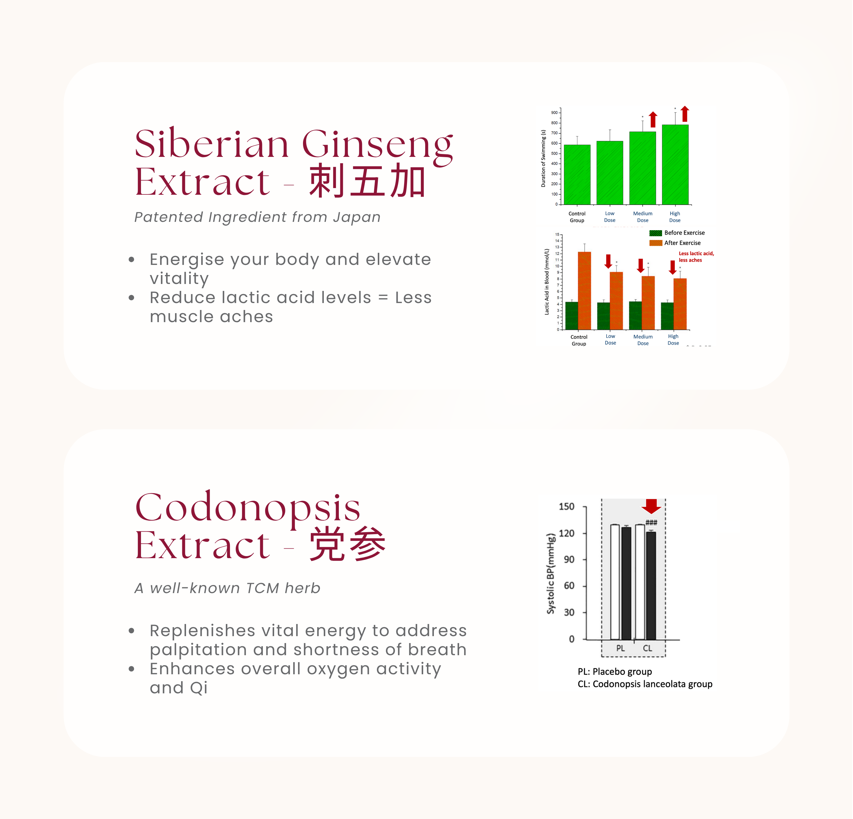 Contains Siberian Ginseng Extract that helps boost energy levels and vitality, reducing symptoms like fatigue and weakness.