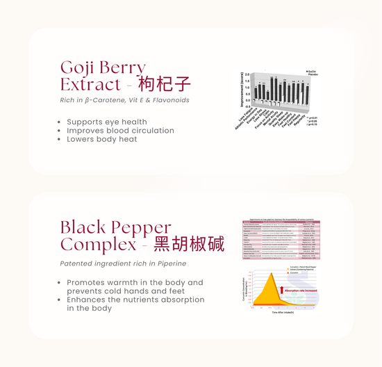 Jujube and Patent Yuzu Seed promotes blood circulation, which can help alleviate the discomfort of cold hands and feet, ensuring better overall warmth and comfort.