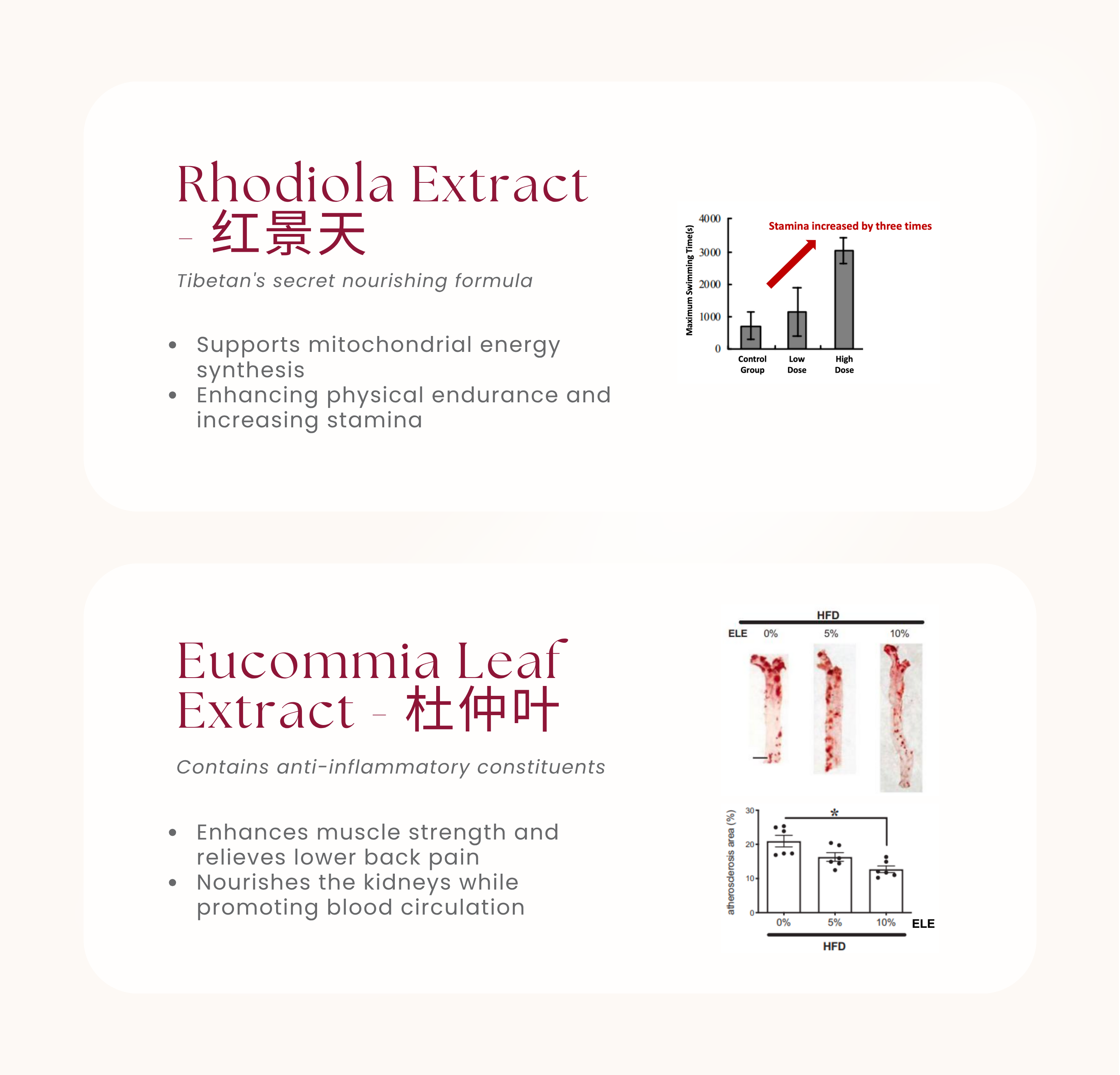 Eucommia - A TCM remedy renowned for musculoskeletal support. Provides relief from lower back pain and discomfort.