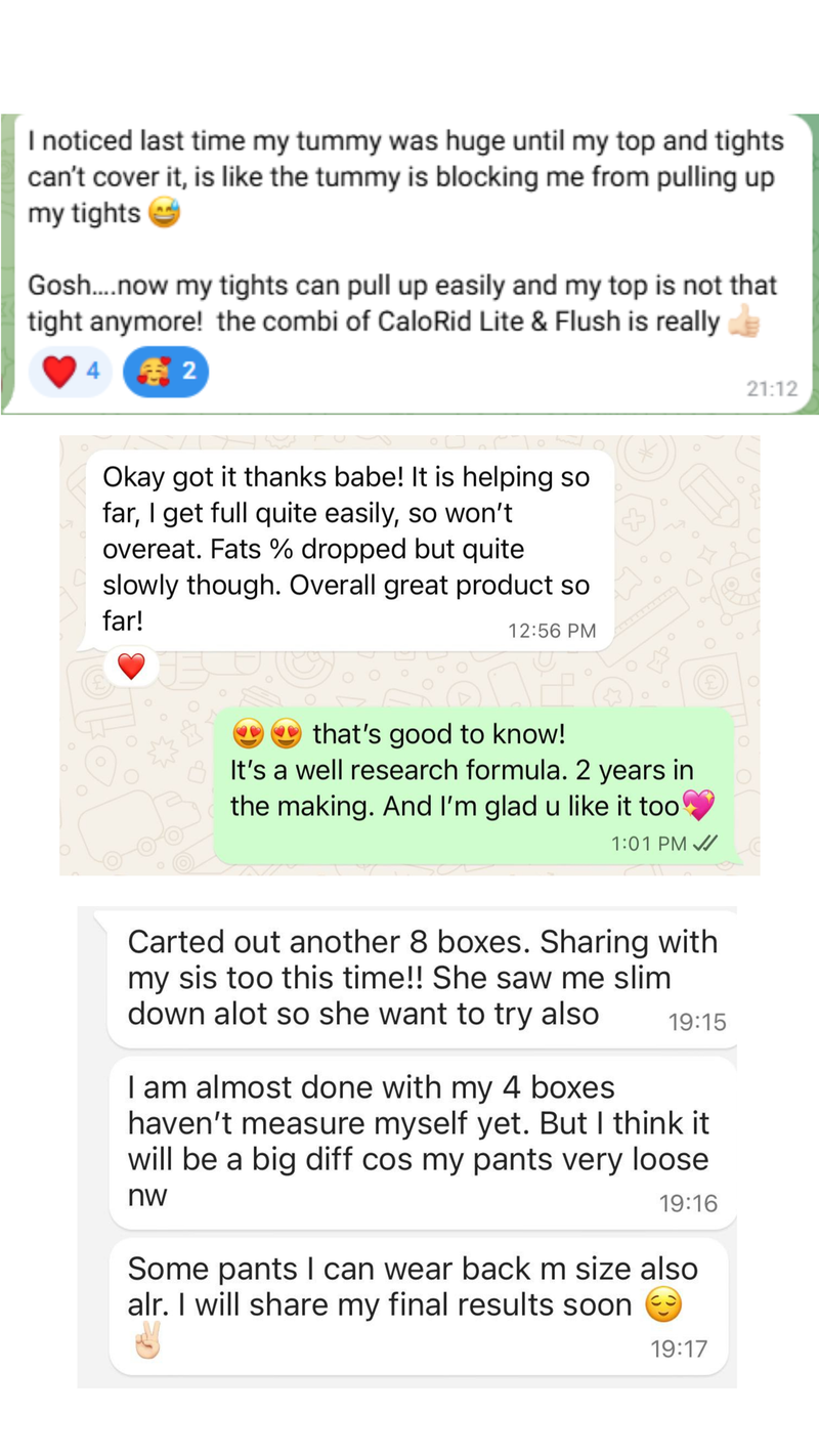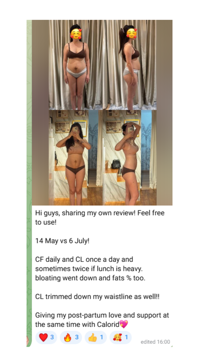 “I am so happy, my weight is finally below 60kg after 1 month of consuming CaloRid Lite."